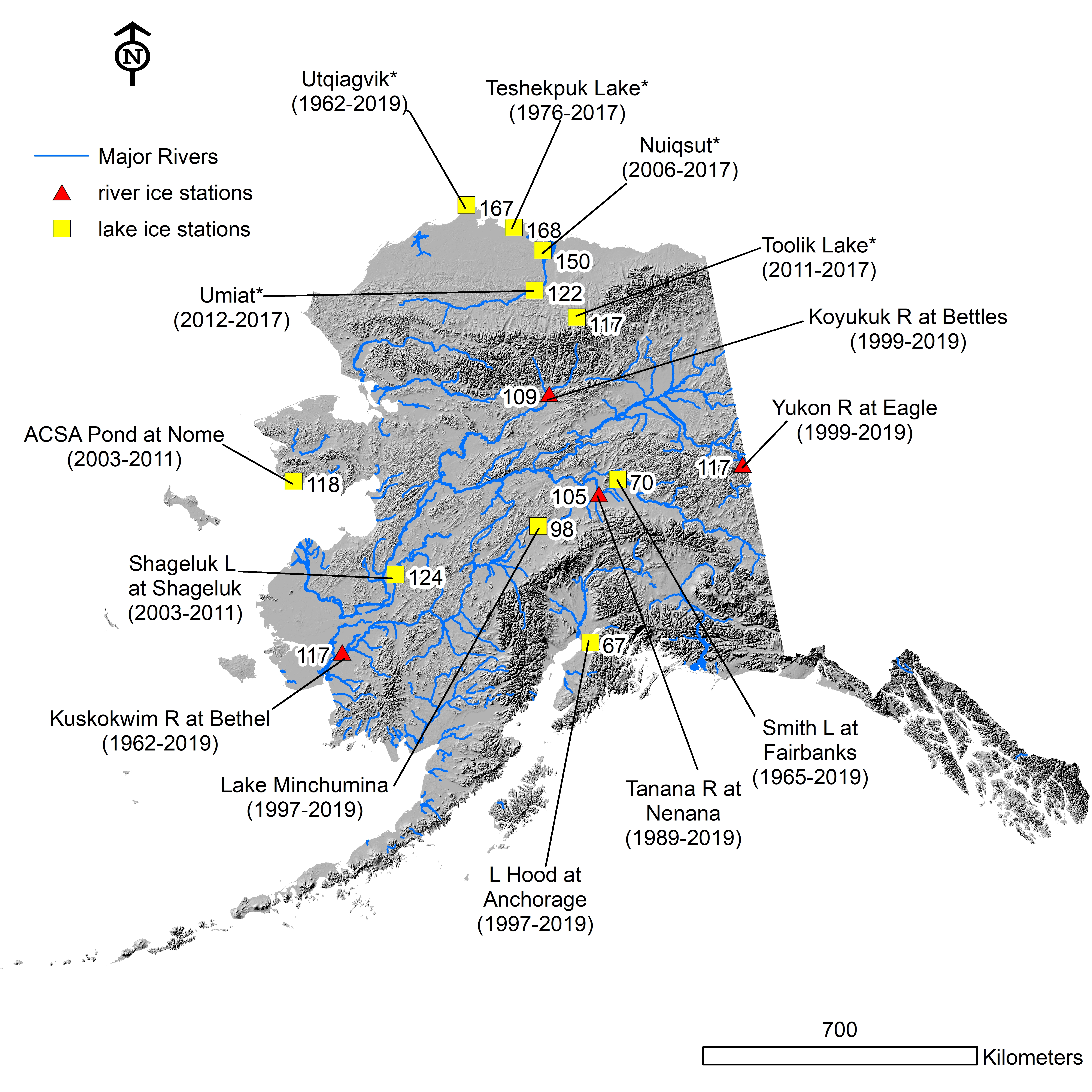 Arp, C. D., Cherry, J. E., Brown, D. R. N., Bondurant, A. C., and Endres, K. L.: Observation-derived ice growth curves show patterns and trends in maximum ice thickness and safe travel duration of Alaskan lakes and rivers, The Cryosphere, 14, 3595–3609, https://doi.org/10.5194/tc-14-3595-2020, 2020.