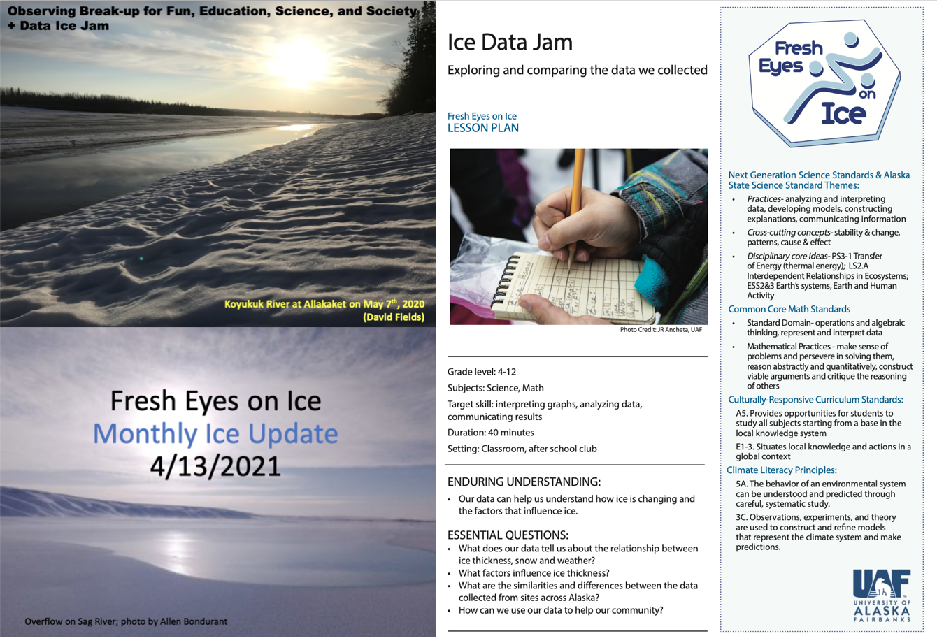 - Ice Data Jams for Youth: Want to engage your youth group in an Ice Data Jam? Check out this new lesson plan by Dr. Katie Spellman to use Fresh Eyes on Ice data with your class, family, or after-school club.