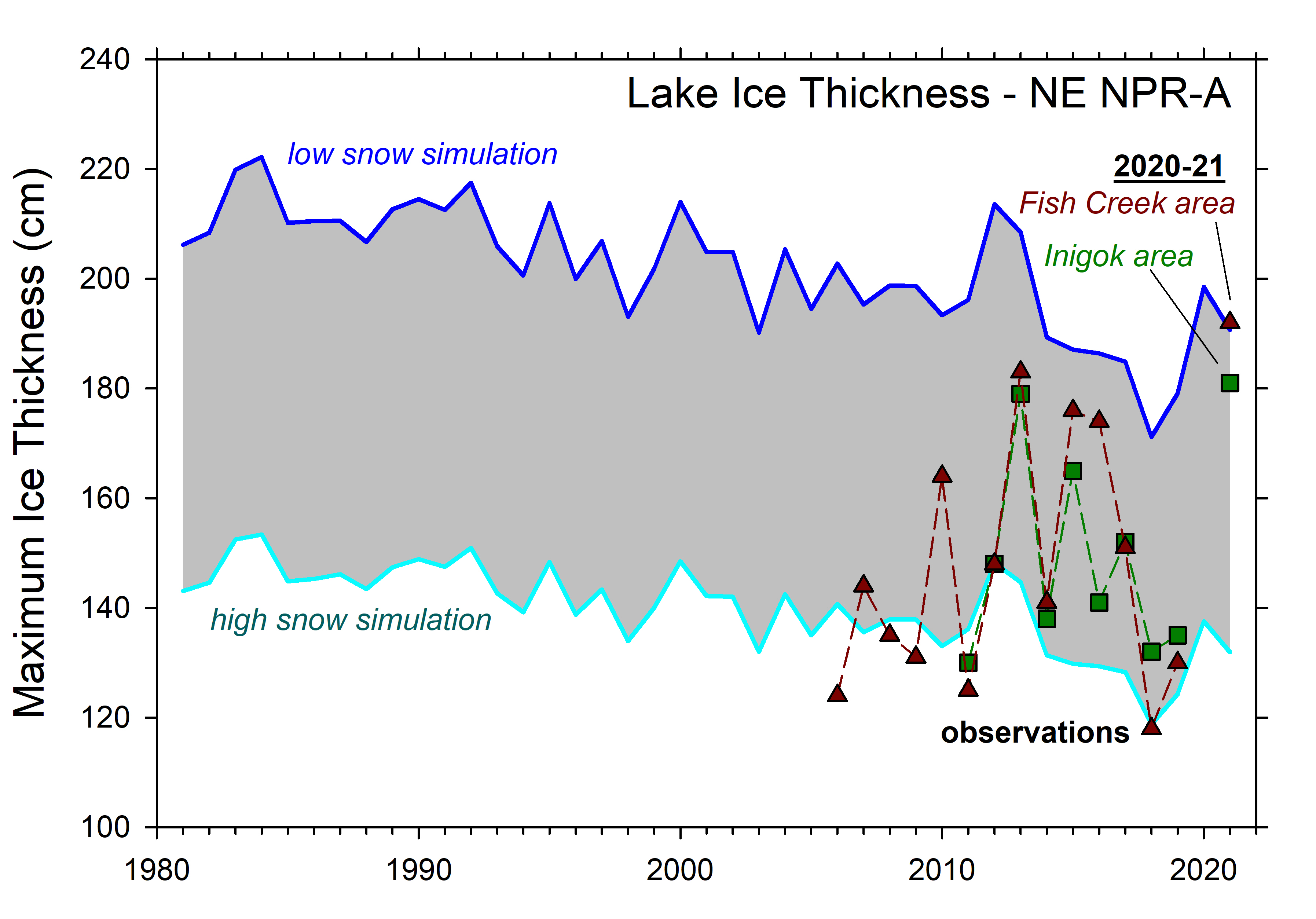 Hot off the press from the Fresh Eyes on Ice team. This study reports how very thick ice can still grow on North Slope rivers and lakes during low snow winters, despite recent thinning trends. Ice thickness has important implications for aquatic habitat in both cases. Thanks to BLM and NSF for support of this research!