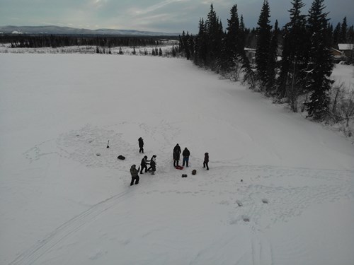 Dot Lake students and Fresh Eyes on Ice team members at Dot Lake. Credit: Allen Bondurant