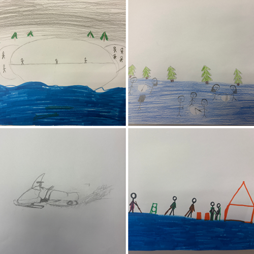 Dot Lake students shared a wide variety of ice stories, including snowmachining on local lakes, ice fishing, and playing a game called Fox & Geese that is best played in the snow. We welcomed community member Charlene Cleary to share her experiences with being safe on the ice and memories about how the ice has changed since she was a child growing up in the region. As with every community who has joined the Fresh Eyes on Ice project, we felt grateful to learn and share stories with the students and teachers in Dot Lake, and we appreciated the perspectives they had around ice and ice safety in their community!