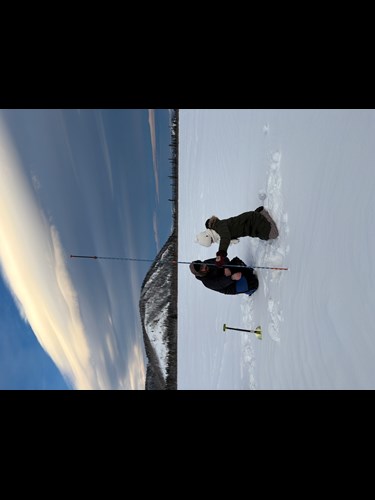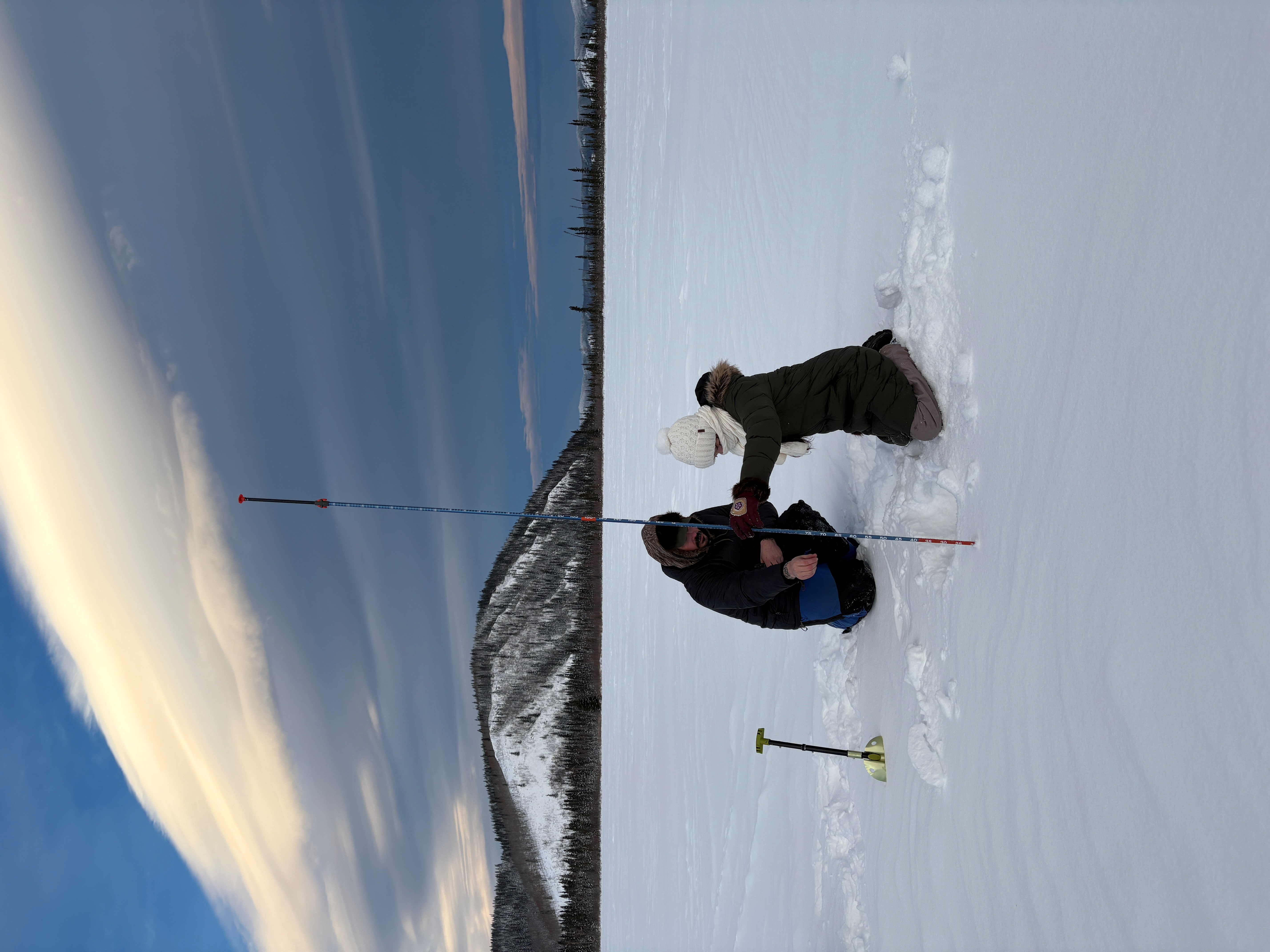 Allen coaches one of the Dot Lake students in measuring snow depth. Credit: Sarah Clement