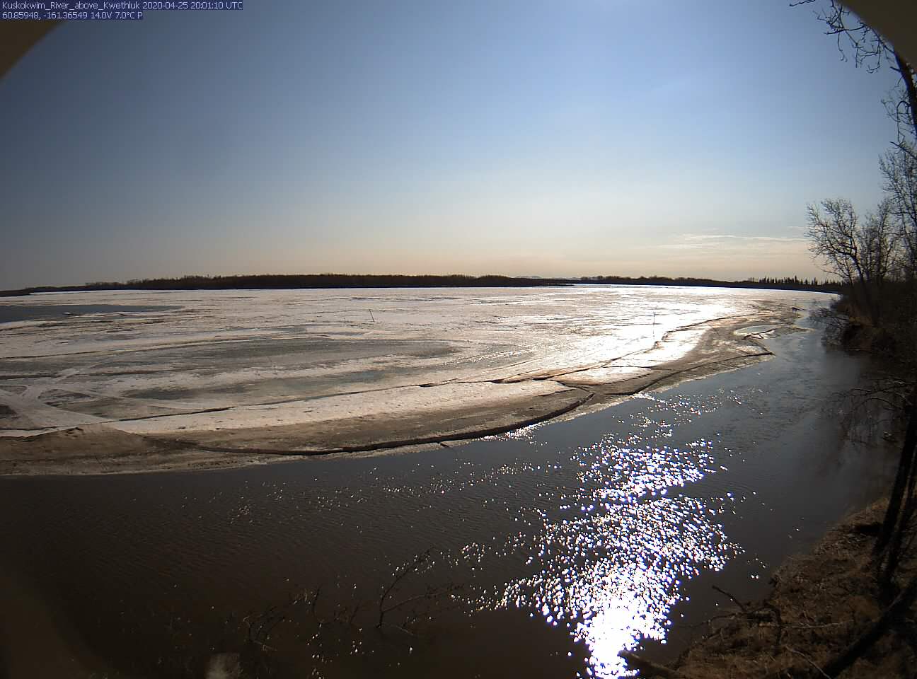 Here we show breakup of the Kuskokwim River near Kwethluk. Breakup records are from the NWS River Forecast Center.