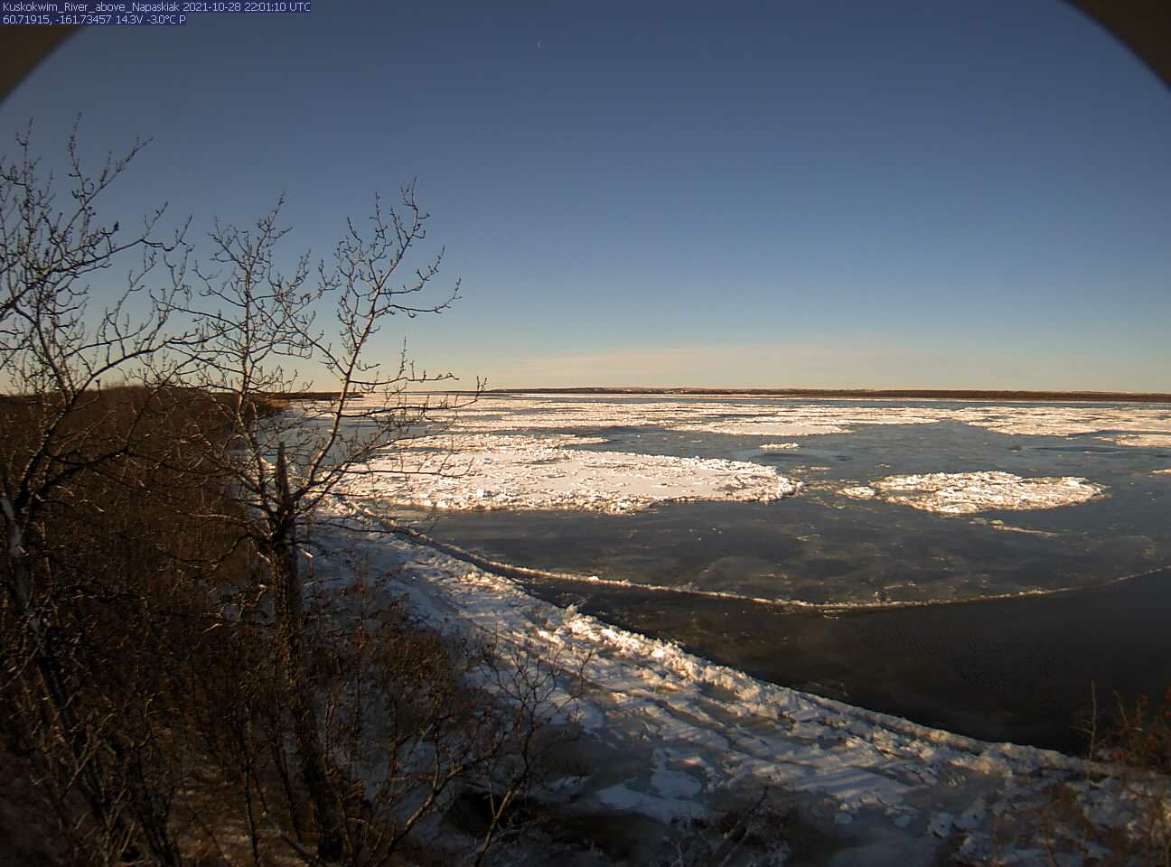 As part of the Fresh Eyes on Ice project (http://fresheyesonice.org/) near-real time cameras are deployed near Alaskan communities to monitor freezeup and breakup conditions on rivers and lakes. We are archiving and sharing these images on YouTube as these ice phenology events occur. Here the Kuskokwim River is shown from mid September to mid December 2019. The location is above the Village of Kwethluk where the river branches into Kuskokwak Slough. Bethel Search and Rescue suggested monitoring this area because of periodic thin ice and open water during the winter. Traveling the Kuskokwim River during the winter is important for the residents of Bethel and many villages along this river of western Alaska. See Bethel Search and Rescue (http://kusko.net/bsar/) for current information on ice and travel conditions.